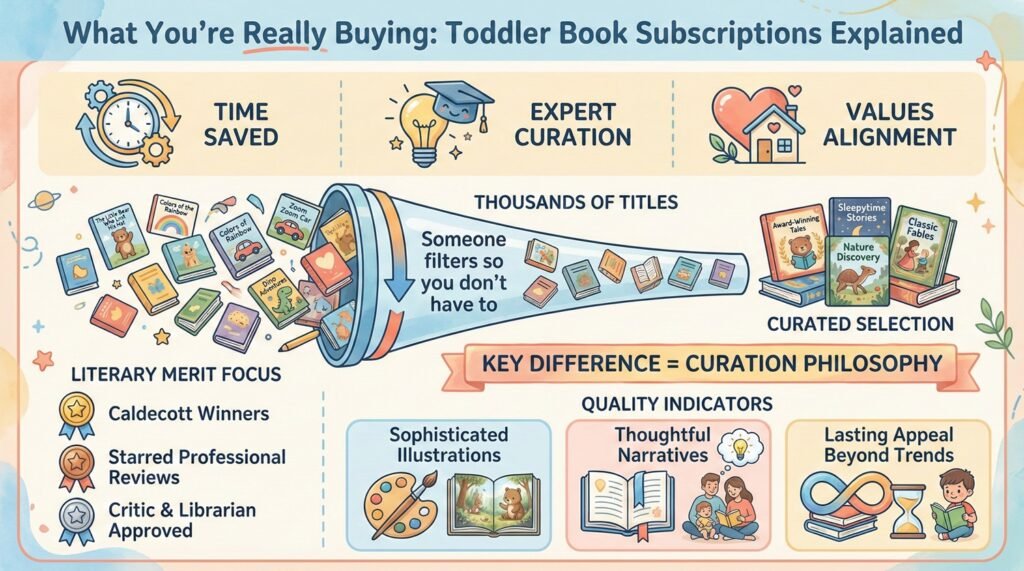 When you subscribe to a toddler book service, you’re purchasing time, expertise, and a curated experience that should align with your family’s values and needs. You’re also paying someone to filter through thousands of titles so you don’t have to.