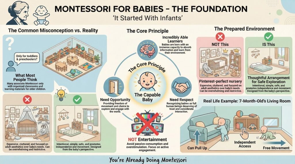 What I find really compelling about Montessori for infants is that you don’t need to buy specific branded products or follow rigid rules. You need to understand a few core principles that fundamentally shift how you see your baby’s development.