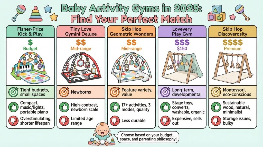 If you have multiple kids planned, investing in a durable gym that’ll last through several babies changes the value calculation significantly.